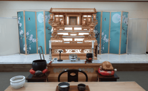 弊社の【家族葬プラン】の祭壇をご希望され、家族葬プランの祭壇にて行いました。